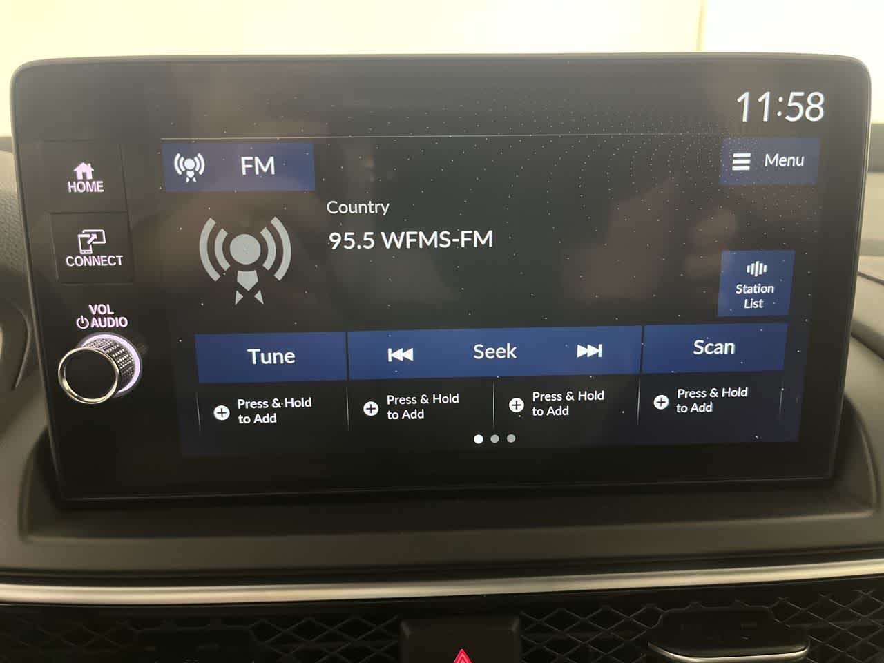 - Radio: AM/FM Acura Premium Audio System -inc: 8 speakers, 9" color touchscreen, Wi-Fi hotspot capability, AcuraLink, AcuraLink connected services, wireless Apple CarPlay and Android Auto compatibility, Bluetooth® HandsFreeLink, Bluetooth® streaming audio, 3.0-amp USB-C smartphone/audio interface w/USB-C charging ports, wireless phone charger and Speed-Sensitive Volume Compensation (SVC)