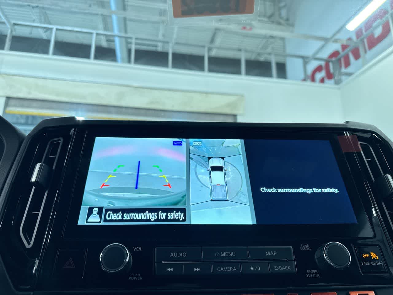PRO PREMIUM PACKAGE Auto-Dimming Mirror, Nissan Door-to-Door Navigation, Traffic Sign Recognition (TSR), Fender Premium Audio System w/10 Speakers, dual subwoofer, Partial Under-Seat Storage Delete, HomeLink UGDO, Auto-Tilt & Slide Sunroof w/Manual Shade, PRO CONVENIENCE PACKAGE Bed Under-Rail Lighting, Remote Engine Starter, 120V Power Outlet in Bed, Heated Front Seats, Intelligent Around View Monitor (I-AVM), Moving Object Detection (MOD) and enhanced off-road mode, Utili-Track System, 2 adjustable tie-down cleats, Spray-In Bedliner, Trailer Hitch w/Wiring Harness, VPC installed accessory, Heated Steering Wheel, Wireless Charging for Personal Devices, Heated Outside Mirrors, 120V Power Outlet in Rear Center Console, OFF-ROAD STYLE STEP RAILS. Nissan PRO-4X with Super Black exterior and Charcoal w/Lava Red St interior features a V6 Cylinder Engine with 310 HP at 6400 RPM*.