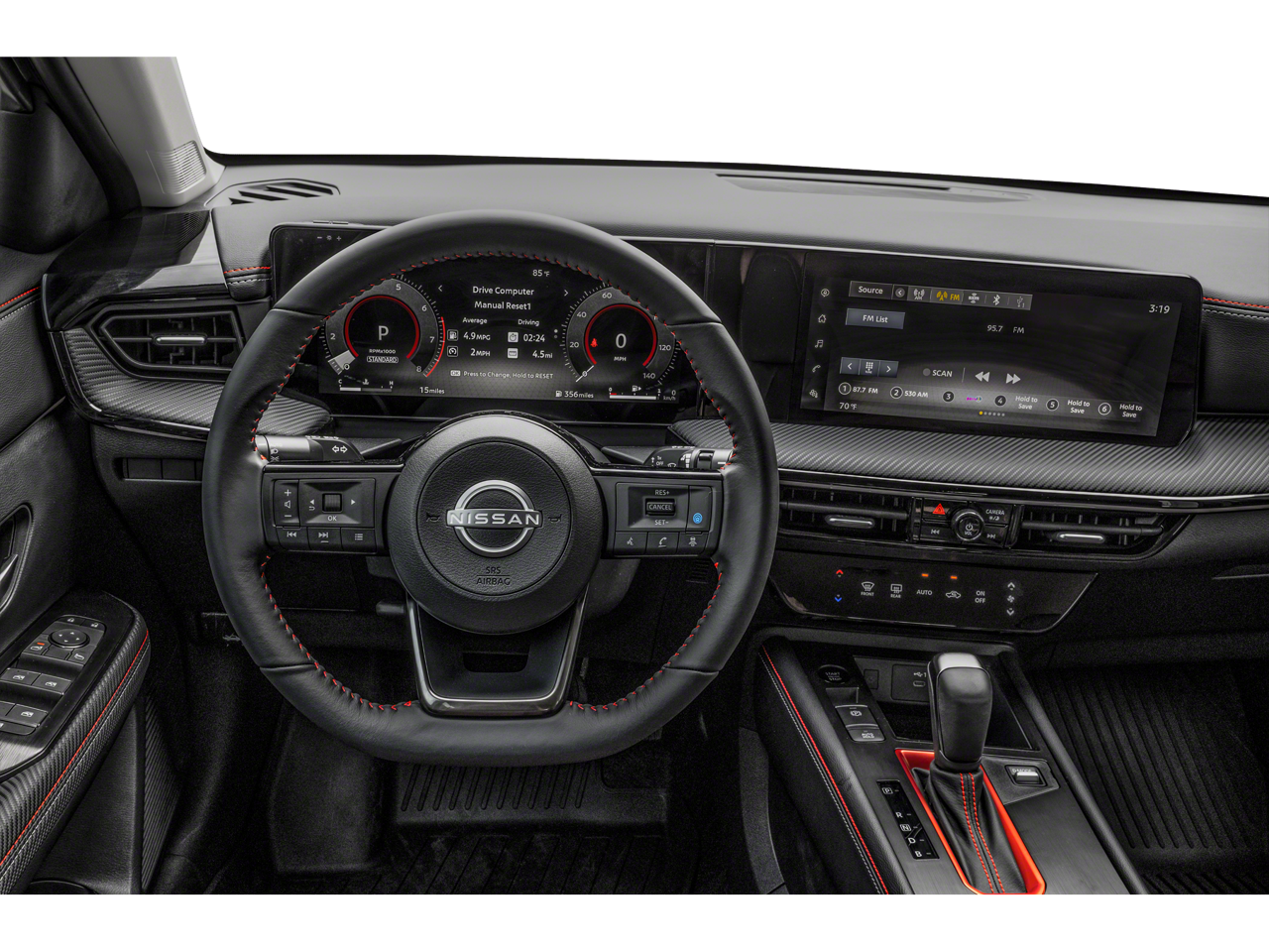 - Radio: AM/FM Audio System -inc: 12.3 color touchscreen display w/6 speakers, Bluetooth® hands-free phone system, streaming audio via Bluetooth®, audio and Bluetooth® steering wheel switches, USB C (data and charge) (front), rear USB type C port (2), NissanConnect featuring wireless Apple CarPlay, wireless Android Auto, Siri eyes free, SiriusXM satellite radio w/advanced auto features and hands-free text messaging assistant