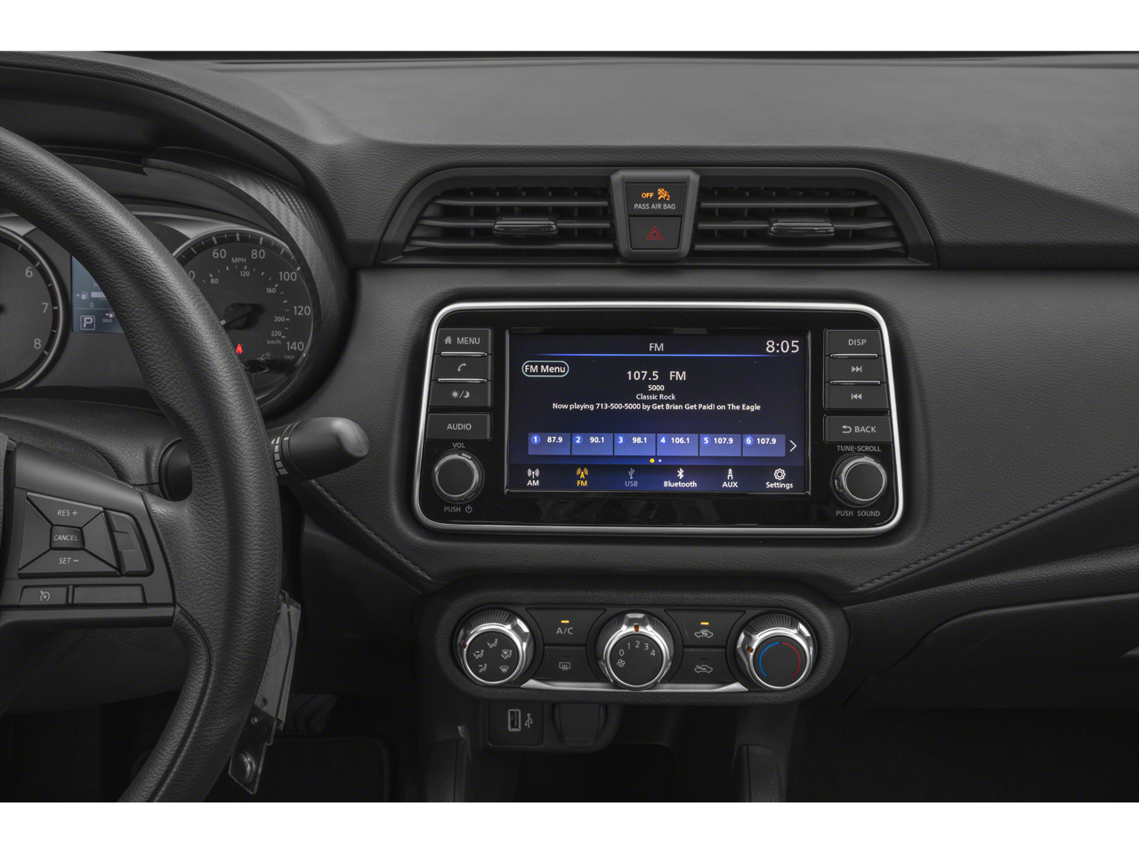 - Radio: AM/FM Audio System -inc: RDS, MP3, aux-in, 7" color touchscreen display, Bluetooth® hands-free phone system, streaming audio via Bluetooth®, interface for iPod and other compatible devices, hands-free text messaging assistant, Siri Eyes Free/Google Assistant voice recognition, 4 speakers and 3 USB ports (2-charge only)