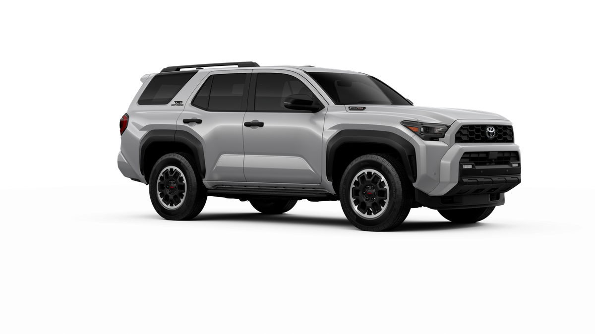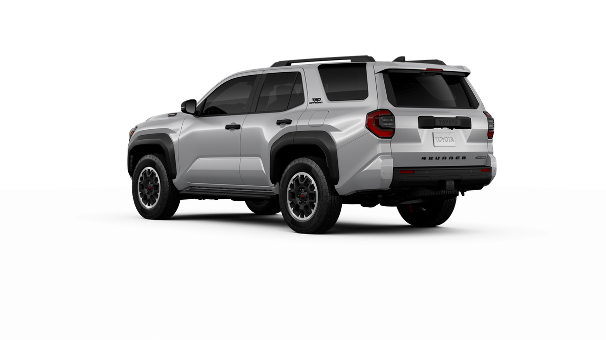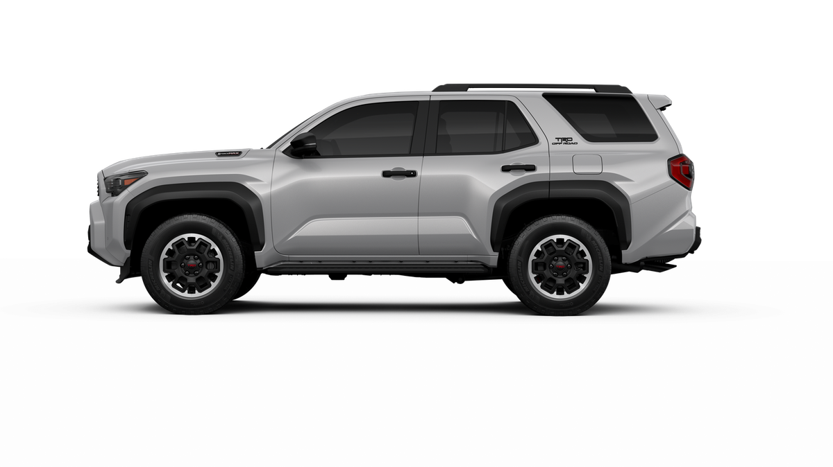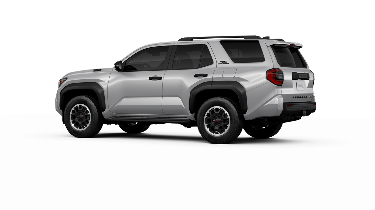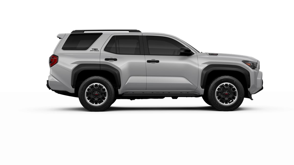 - Black honeycomb-style grille, mirror caps, door handles, and overfenders; color-keyed rear spoiler; black "TRD OFF ROAD" and "4RUNNER" badges