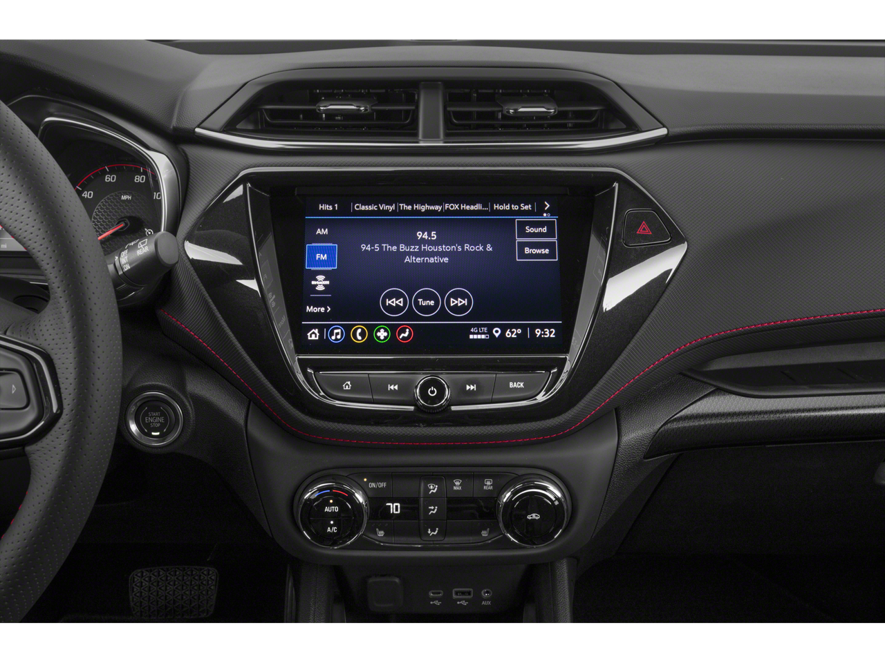 AUDIO SYSTEM, CHEVROLET INFOTAINMENT 3 SYSTEM 7 diagonal color touchscreen, AM/FM stereo. Additional features for compatible phones include: Bluetooth® audio streaming for 2 active devices, voice command pass-through to phone, Apple CarPlay® and Android Auto® capable. (8 screen when (ZL3) Convenience Package and (ZL5) Driver Confidence Package or (SOR) Confidence II Package are ordered.) (STD), ENGINE, ECOTEC 1.3L I3 TURBO DOHC SIDI WITH VARIABLE VALVE TIMING (VVT) (155 hp [115 kW] @ 5600 rpm, 174 lb-ft torque [236 N-m] @ 1600 rpm) (STD), TRANSMISSION, 9-SPEED AUTOMATIC (STD).